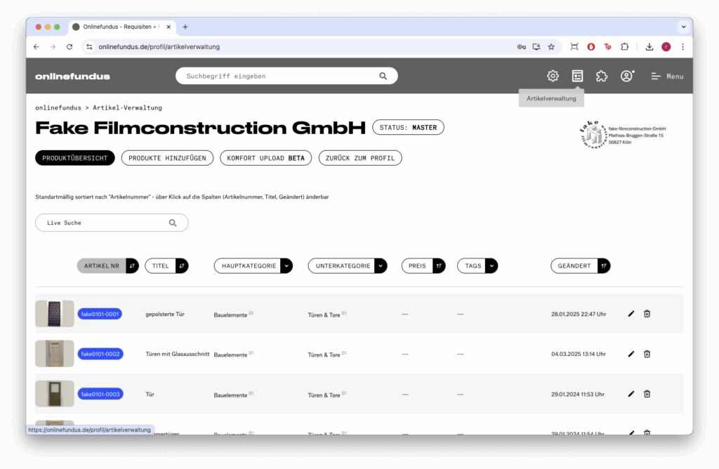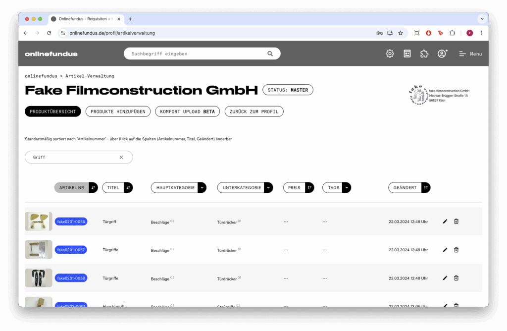Produktübersicht: Hier finden Sie Ihre Artikel, die Sie durchsuchen sowie nach verschiedenen Kriterien sortieren und filtern können.