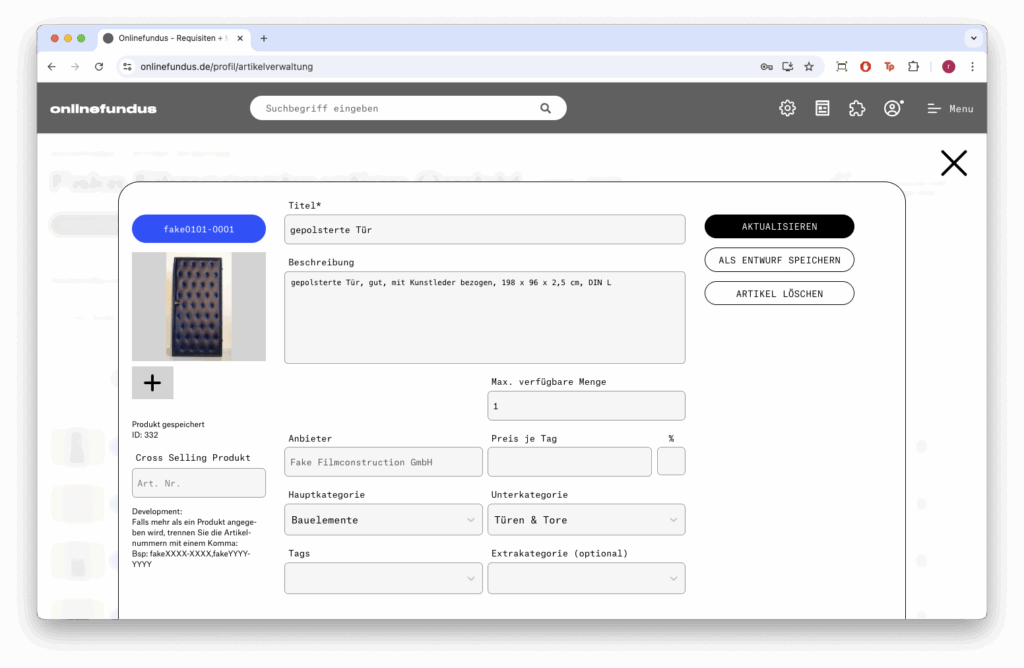 Artikel bearbeiten (Stift-Icon): Klicken Sie hier, öffnet sich ein Popup mit den Artikeldetails, die Sie bearbeiten können.