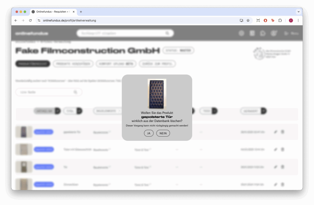 Artikel löschen (Papierkorb-Icon): Klicken Sie hier um einen Artikel zu löschen. Es öffnet sich ein Fenster zur Bestätigung der Löschung. Dieser Vorgang kann nicht rückgängig gemacht werden.